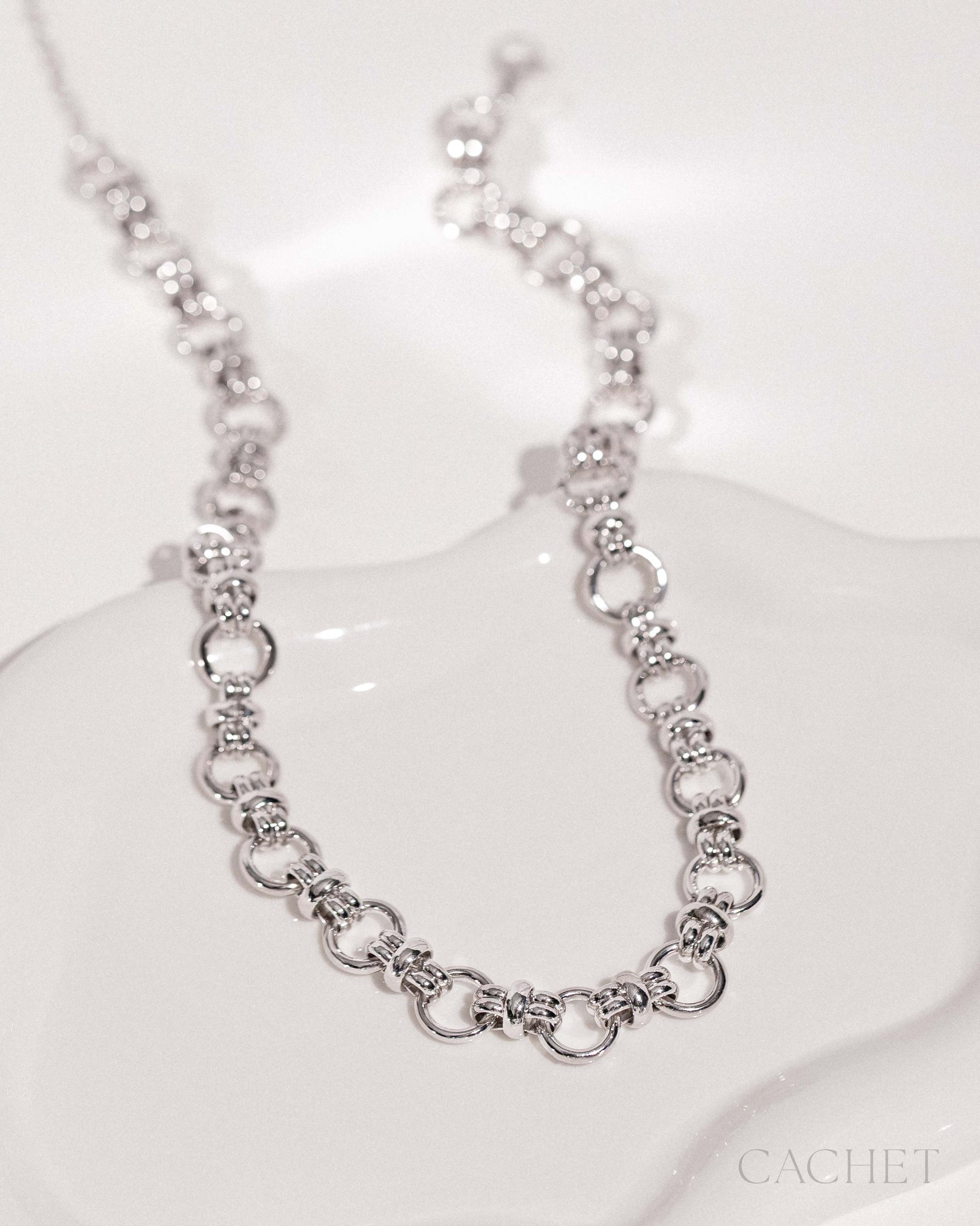 Like momentum made visible, the necklace "Dynamique" drapes the collarbone with vibrant, rhythmic links that feel alive in motion.