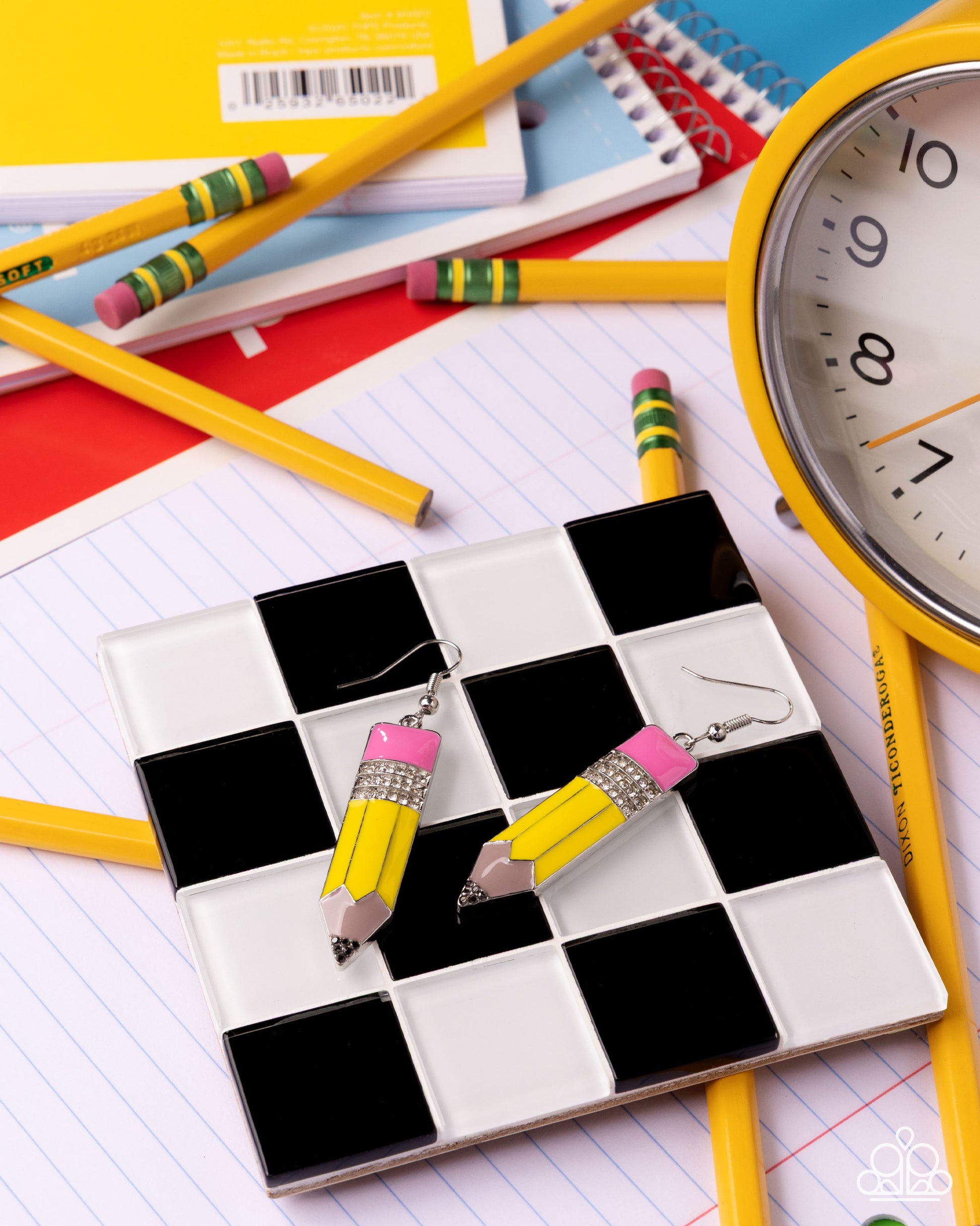 Iconic Institution Yellow Pencil Earring - Paparazzi Accessories