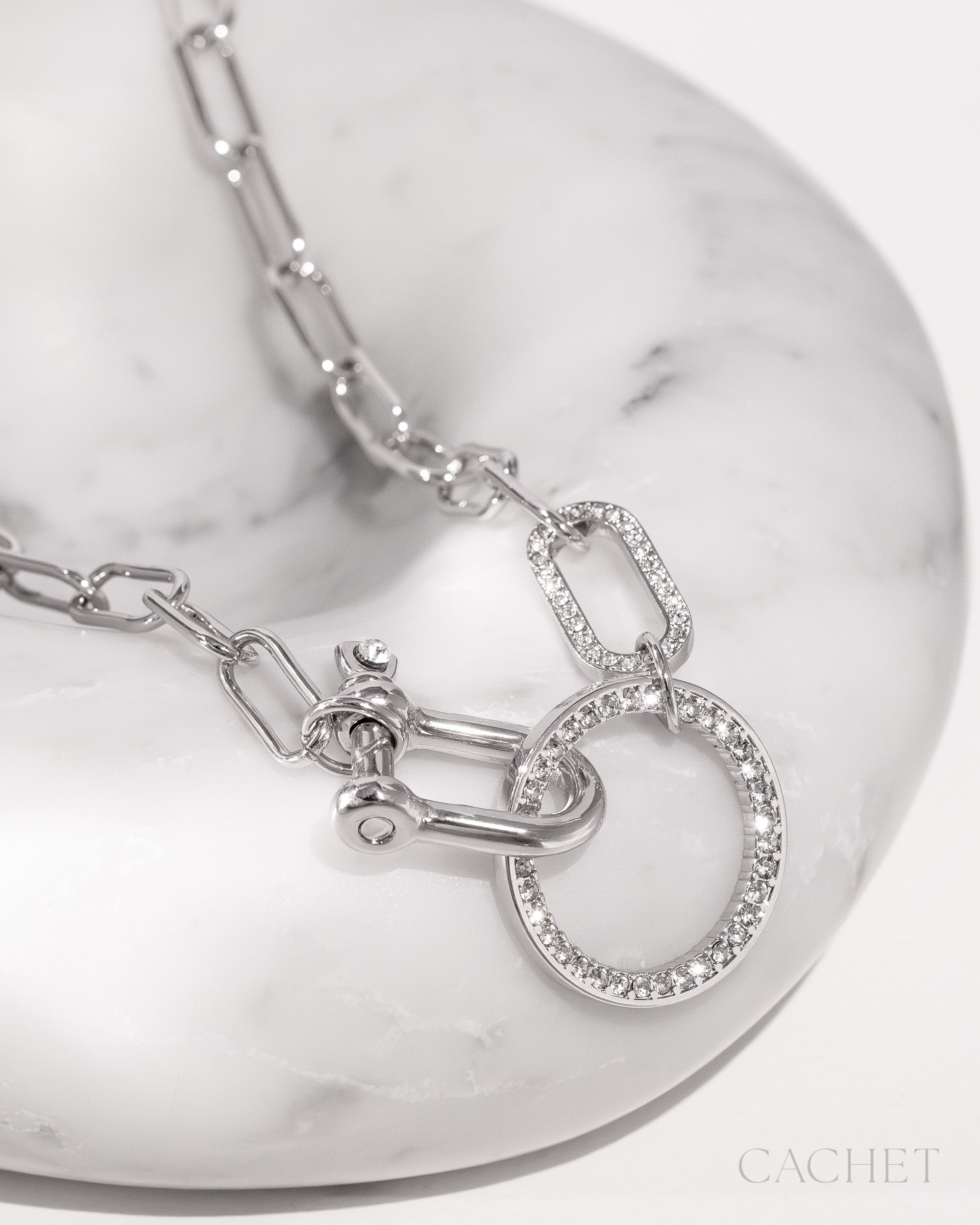 Like a sealed promise, the necklace âOathâ anchors strength and devotion through sculpted links and enduring, polished, elevated rhinestone details.