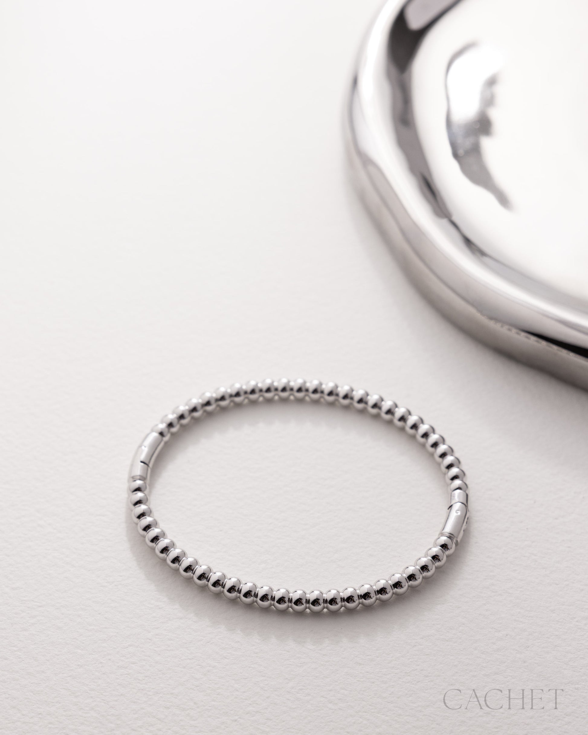 Like light captured in motion, the bracelet Raydia encircles the wrist in polished spheres, each one reflecting a balanced gleam and effortless optimism.
