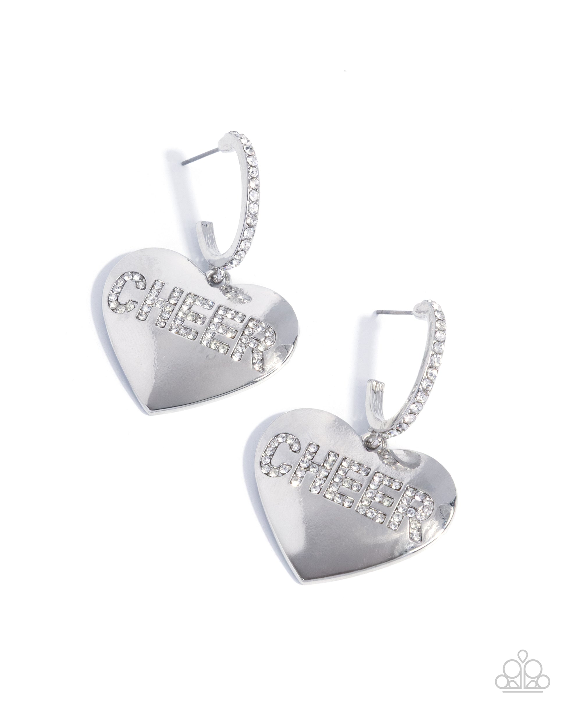 Shimmery Spotter White CHEER Hoop Earring - Paparazzi Accessories