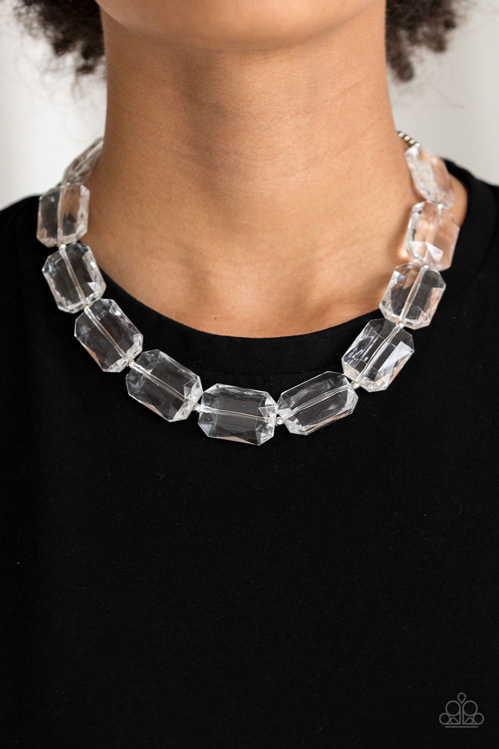 Infused with dainty silver beads, glassy emerald-cut beads join below the collar for a dramatic look. Features an adjustable clasp closure. All Paparazzi Accessories are lead free and nickel free!