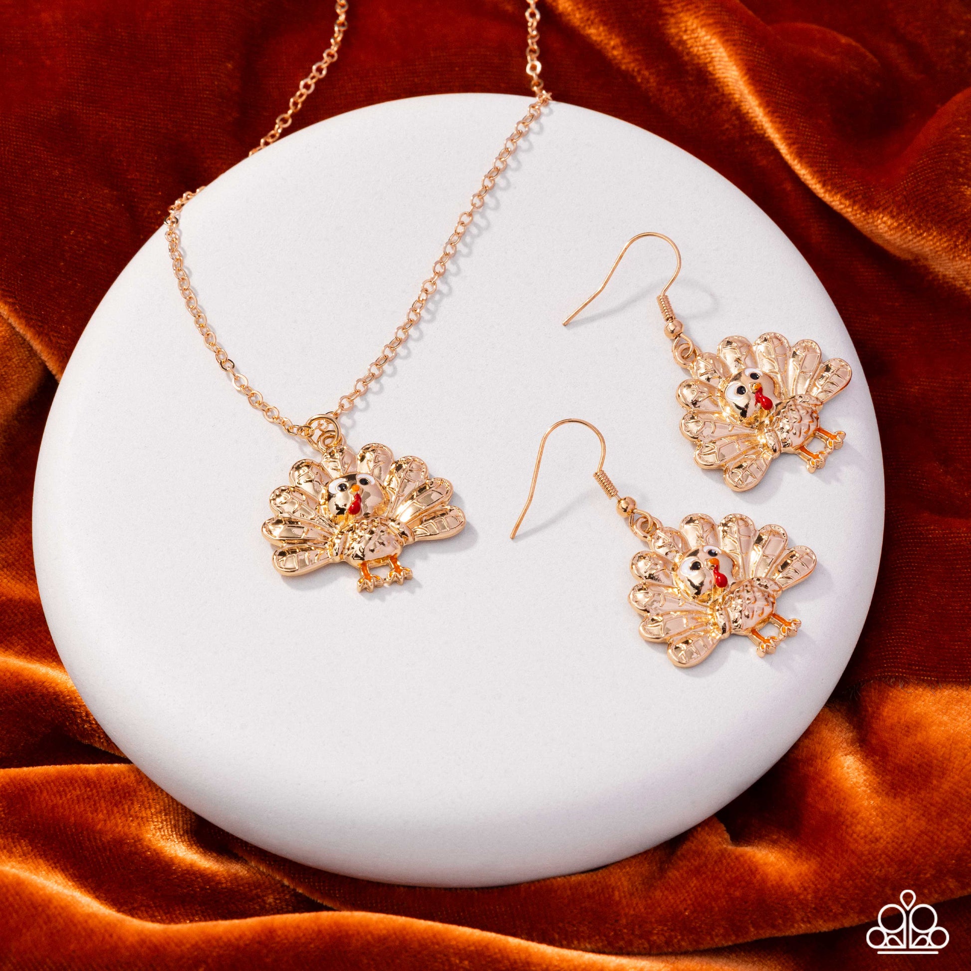 Turkey Tale Gold Necklace & Earring Set - Paparazzi Accessories